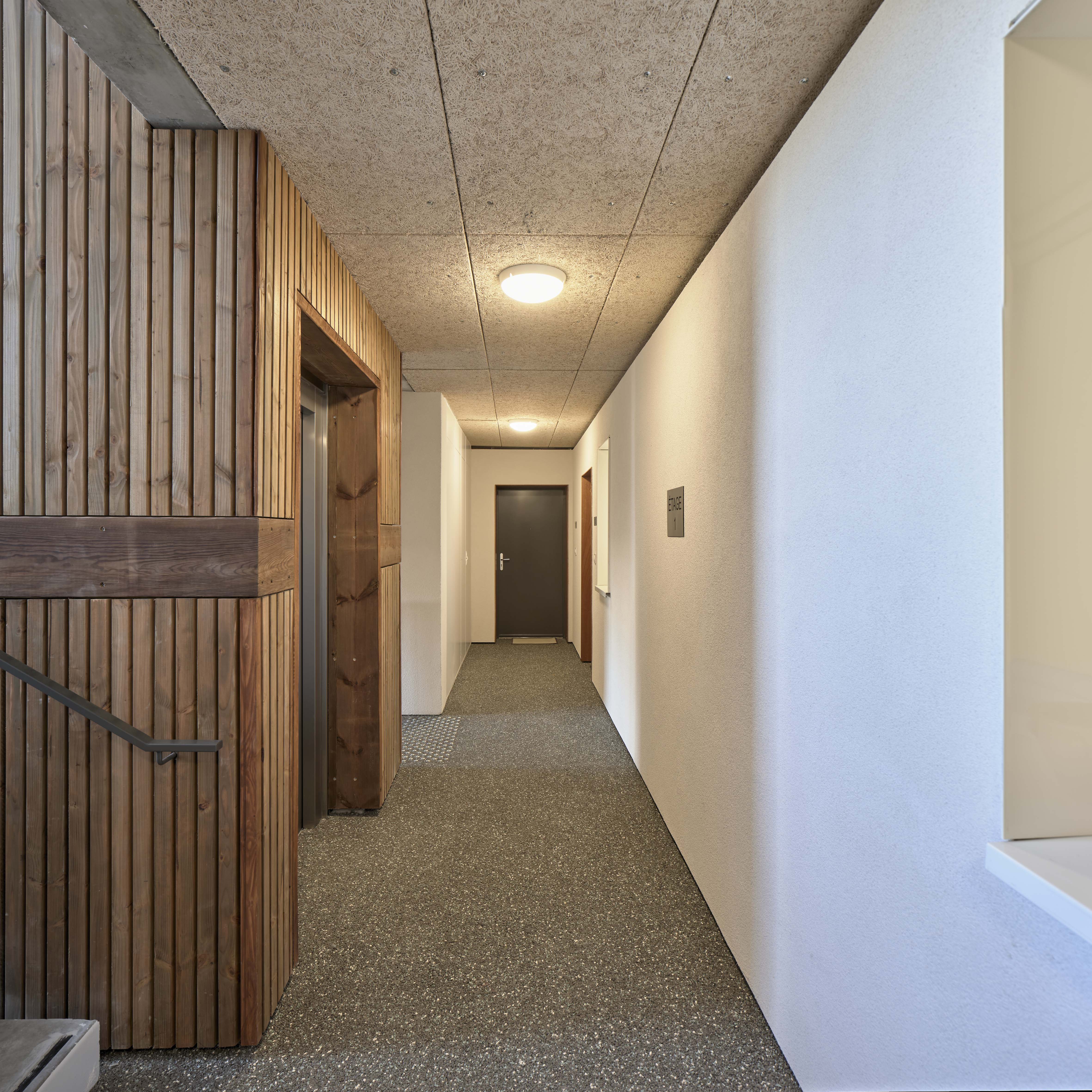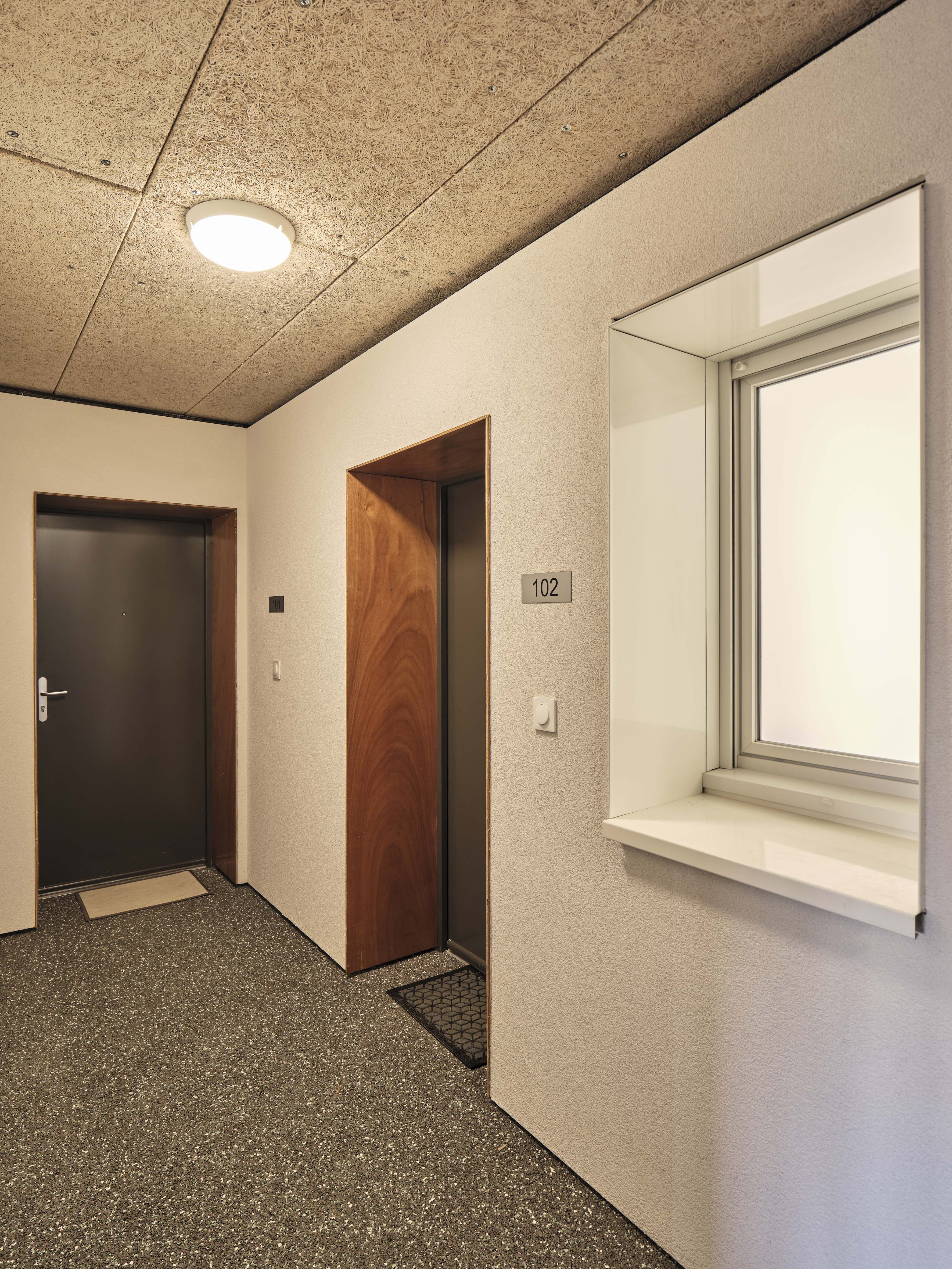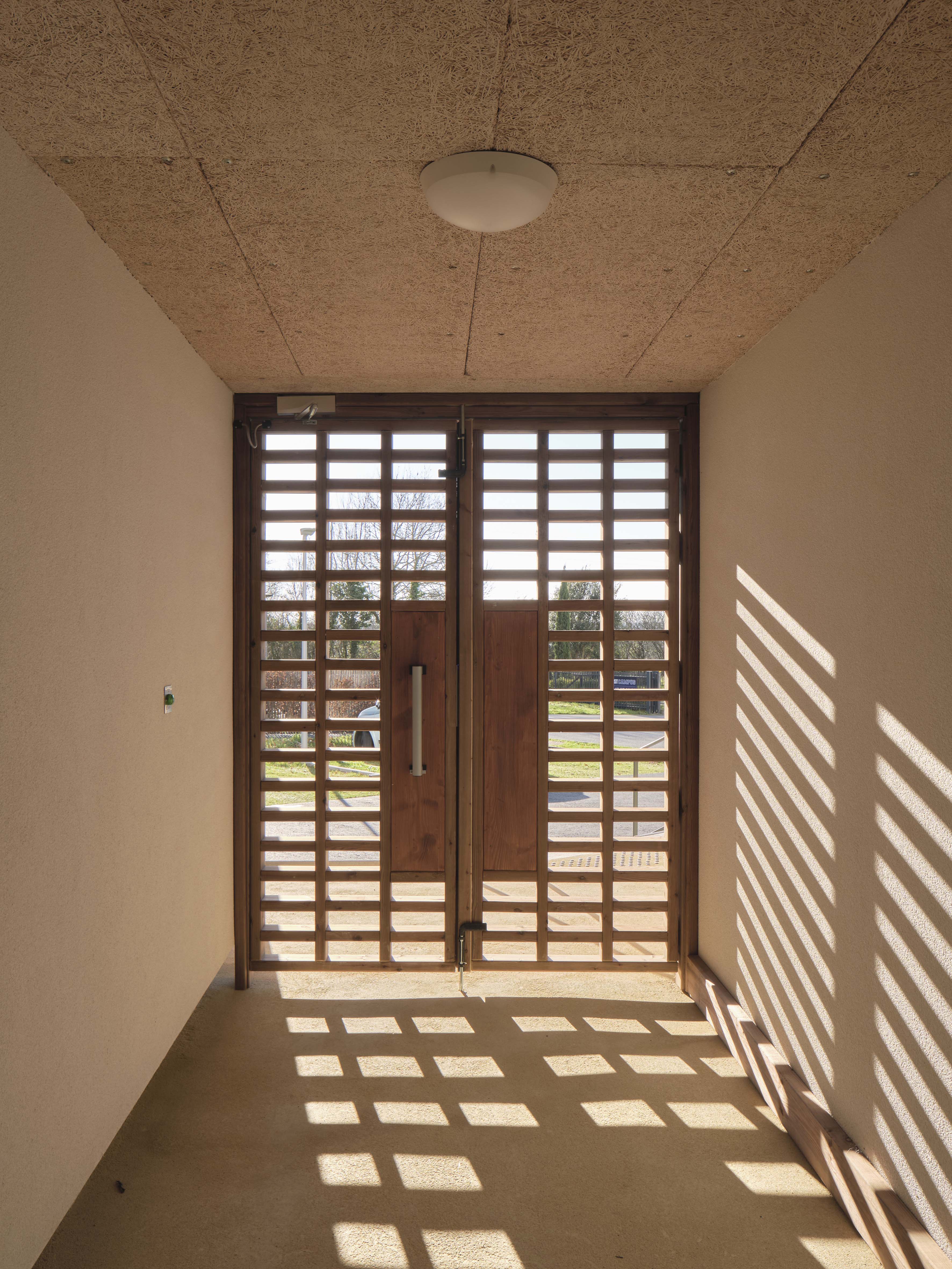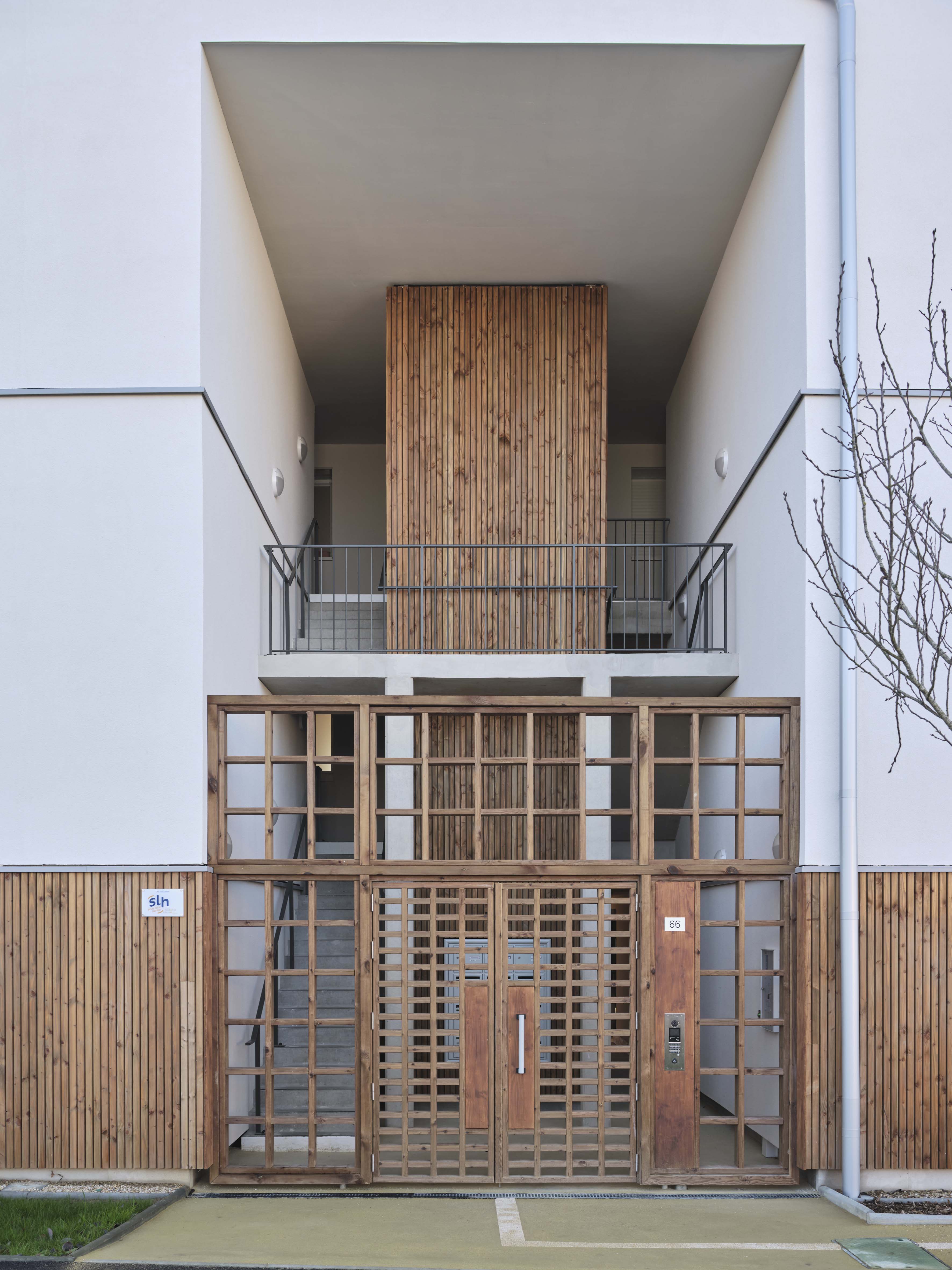 Cette opération de 11 logements s’organise autour d’une cour centrale qui abrite les circulations verticales. Les logements sont desservis par une coursive abritée. L’organisation générale permet une bonne compacité des logements et une volumétrie simple. Toutes les pièces de vie profitent d’une orientation sud. La disposition des terrasses permet une intimité maximale. La particularité de cette opération est d’être conçue avec des murs en bois paille. La paille est fournie par un producteur local. Les performances atteintes que ce soit sur le plan thermique comme pour la décarbonisation sont exceptionnelles. La paille assure également un excellent confort d’été grâce au déphasage.