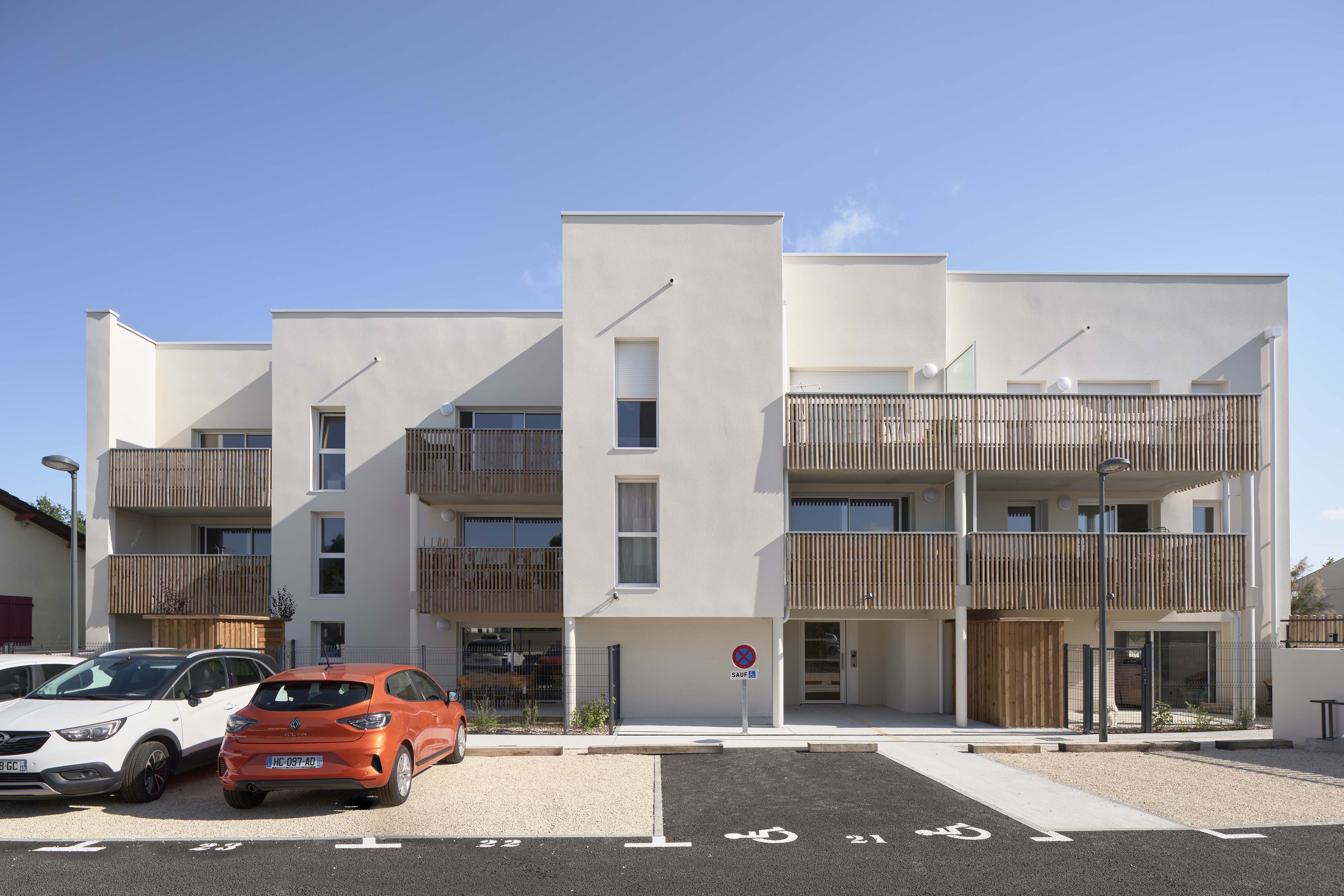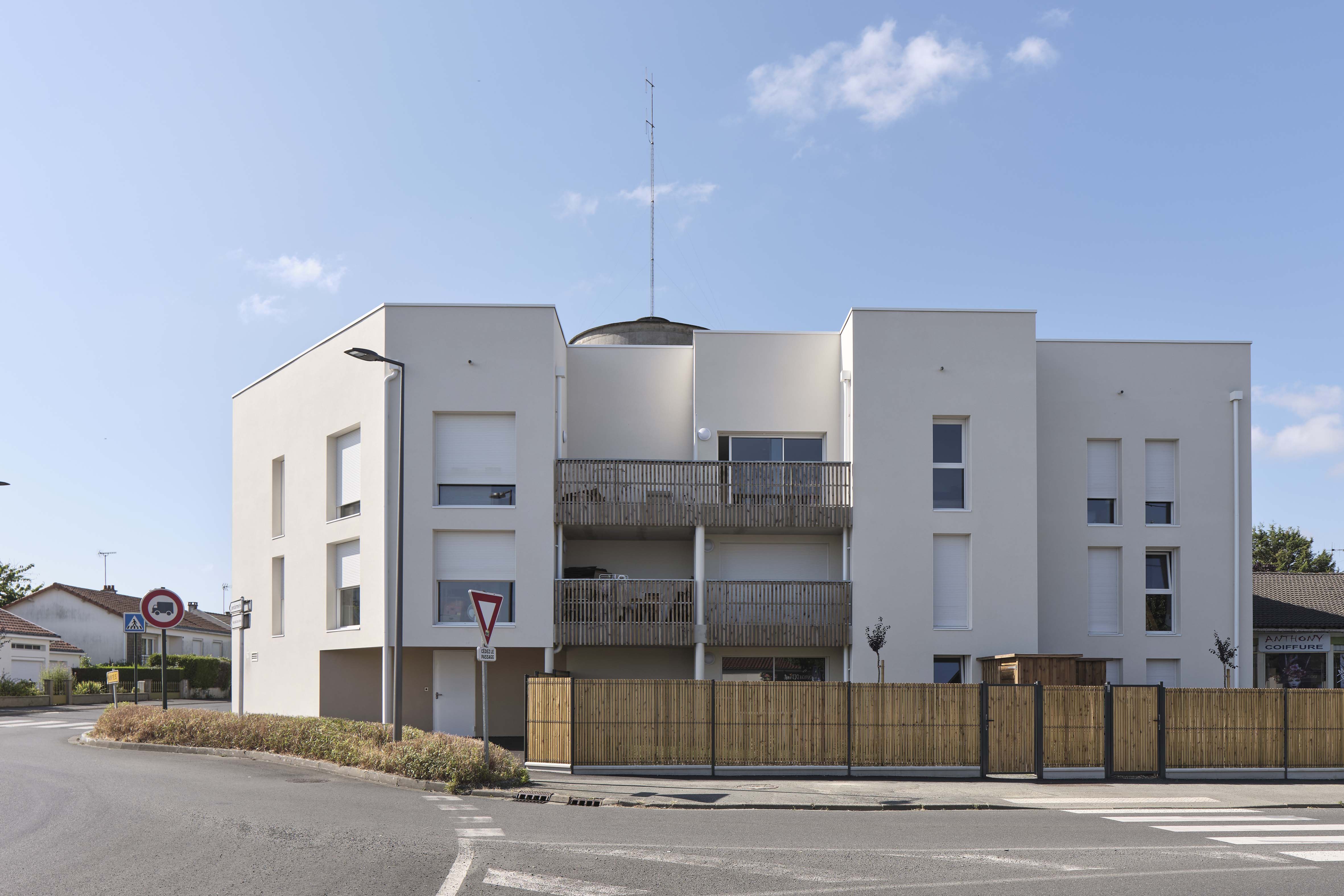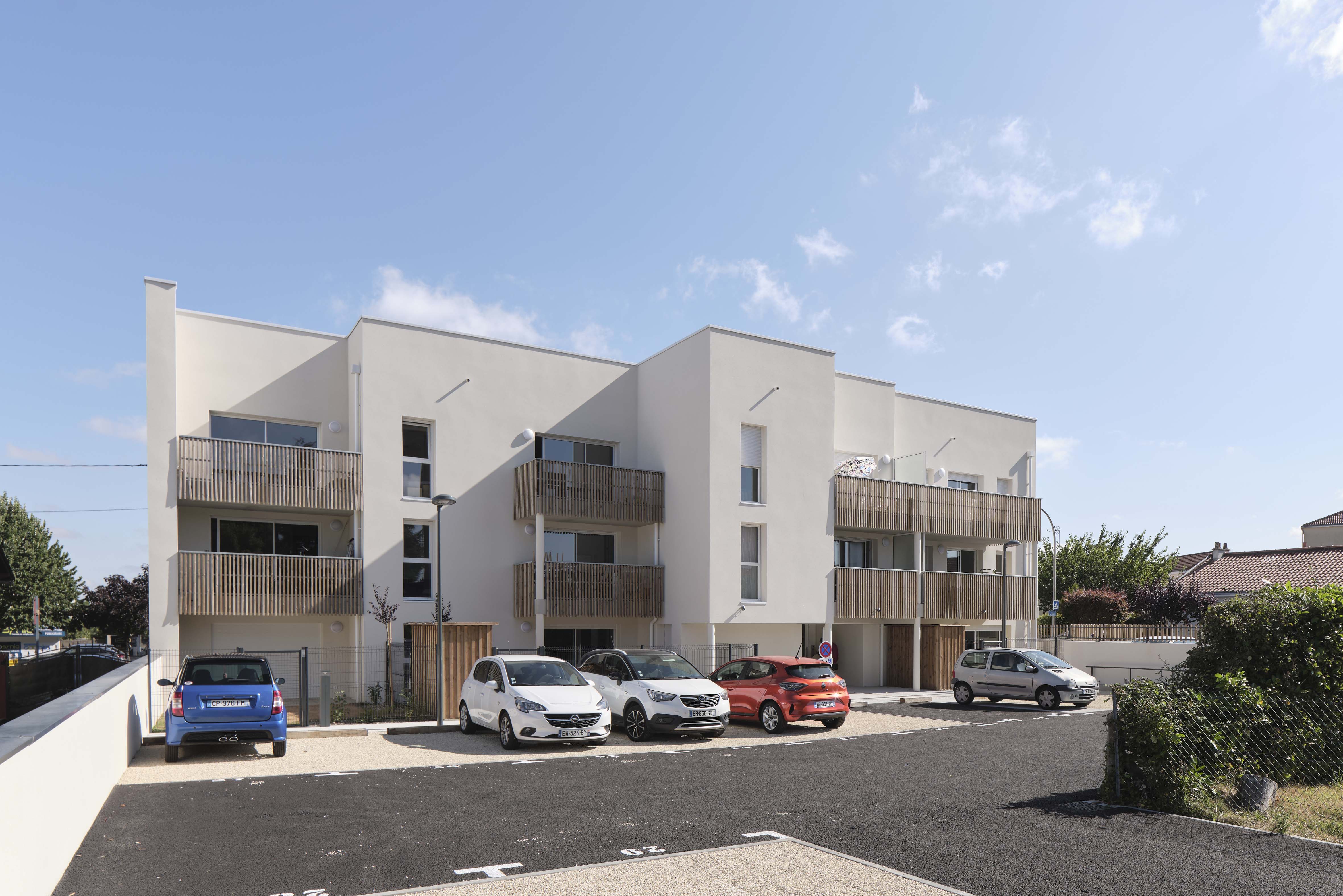 La démolition de l’ancien SPAR permet la construction d’un immeuble collectifs de 9 T3 et 7 T2 pour séniors répondant aux contraintes urbaines. La volumétrie du bâtiment s’adapte aux limites de la parcelle. Malgré la géométrie complexe de cette dernière, les logements se caractérisent par une grande habitabilité. Les 2/3 des logements sont orientés pleins sud avec des balcons permettant le contrôle des apports solaires l’été. Les façades sont en briques enduites. Les garde-corps des balcons sont en tasseaux de bois verticaux apportant modernité et chaleur à la résidence.