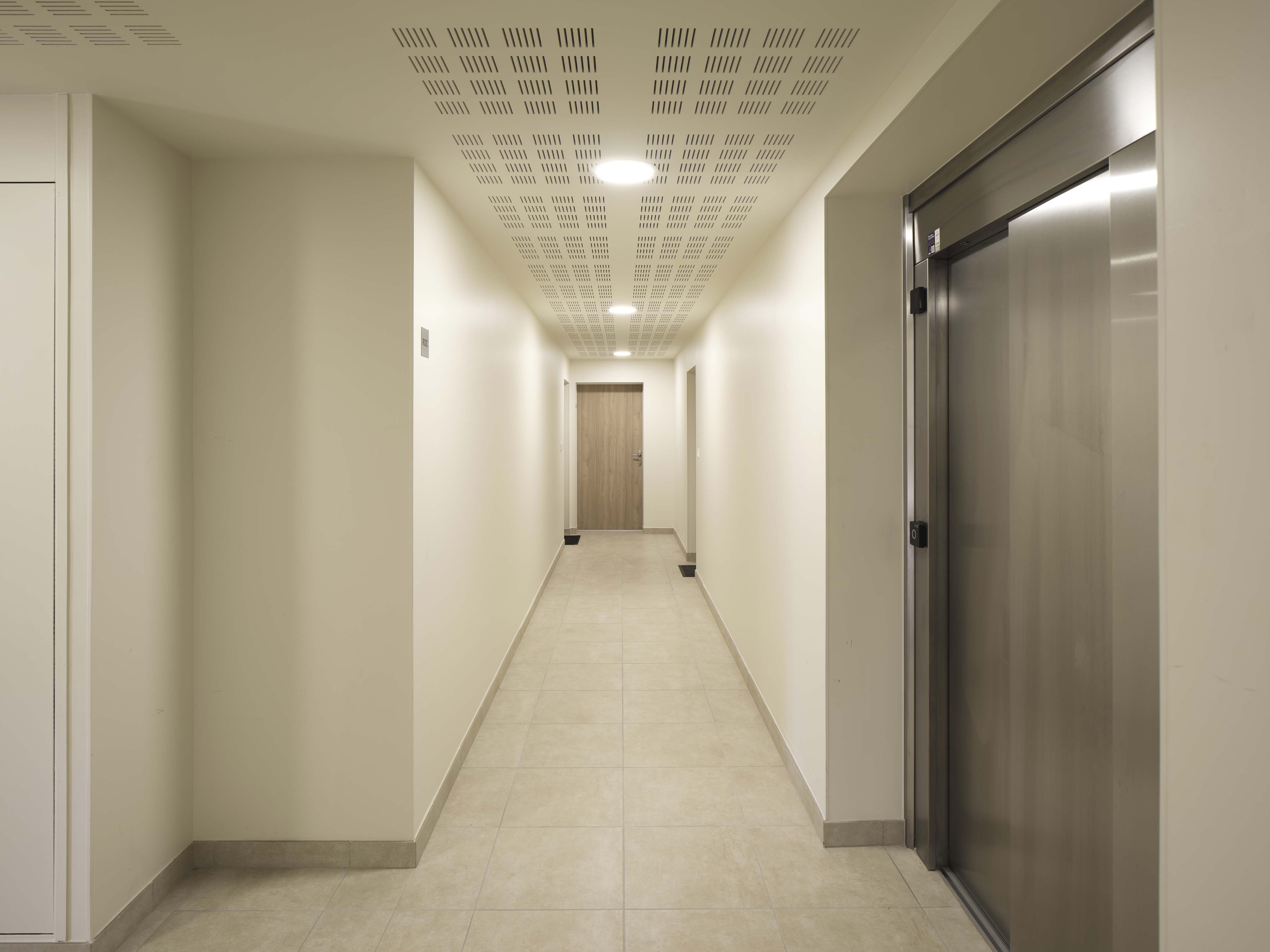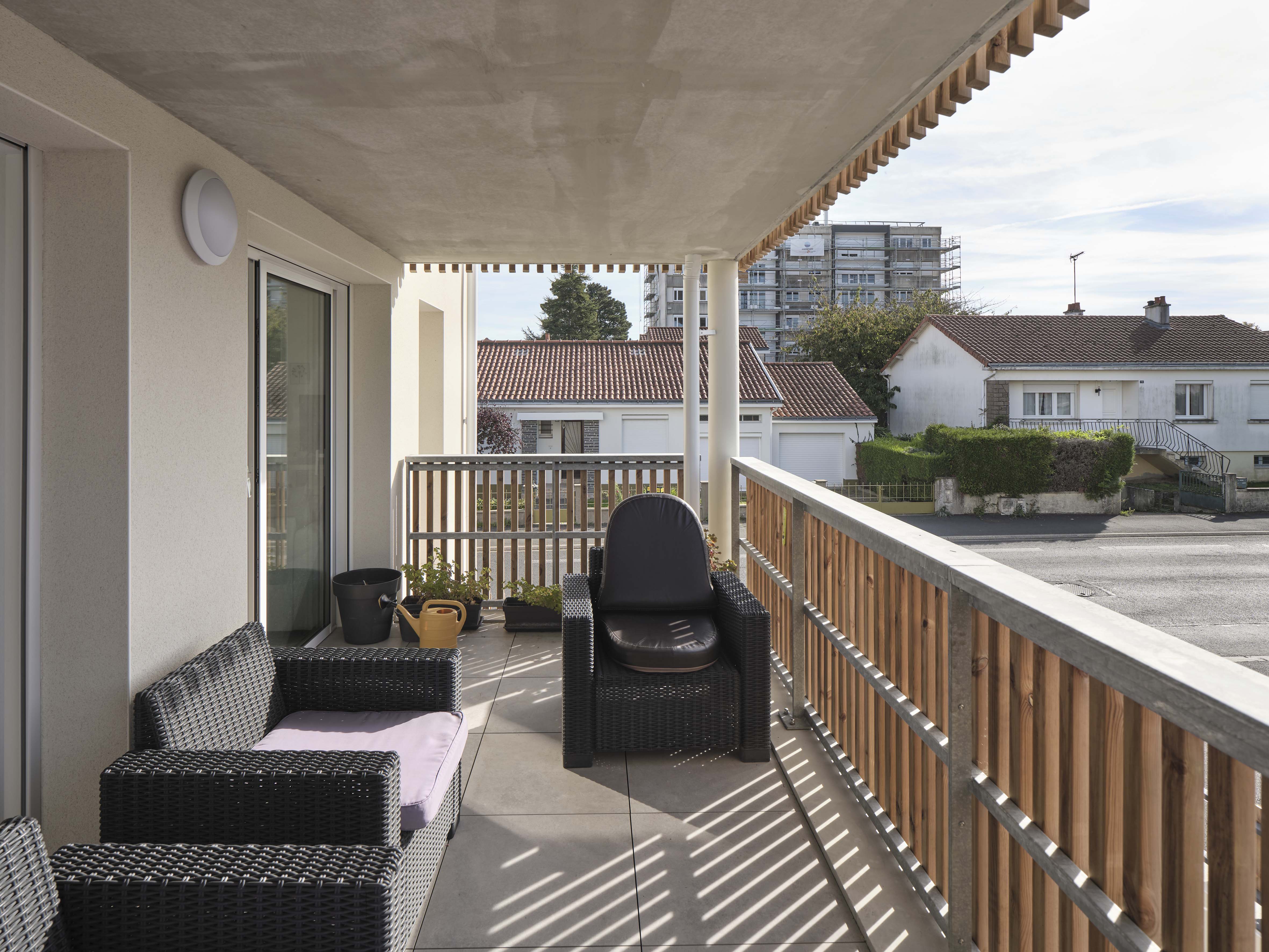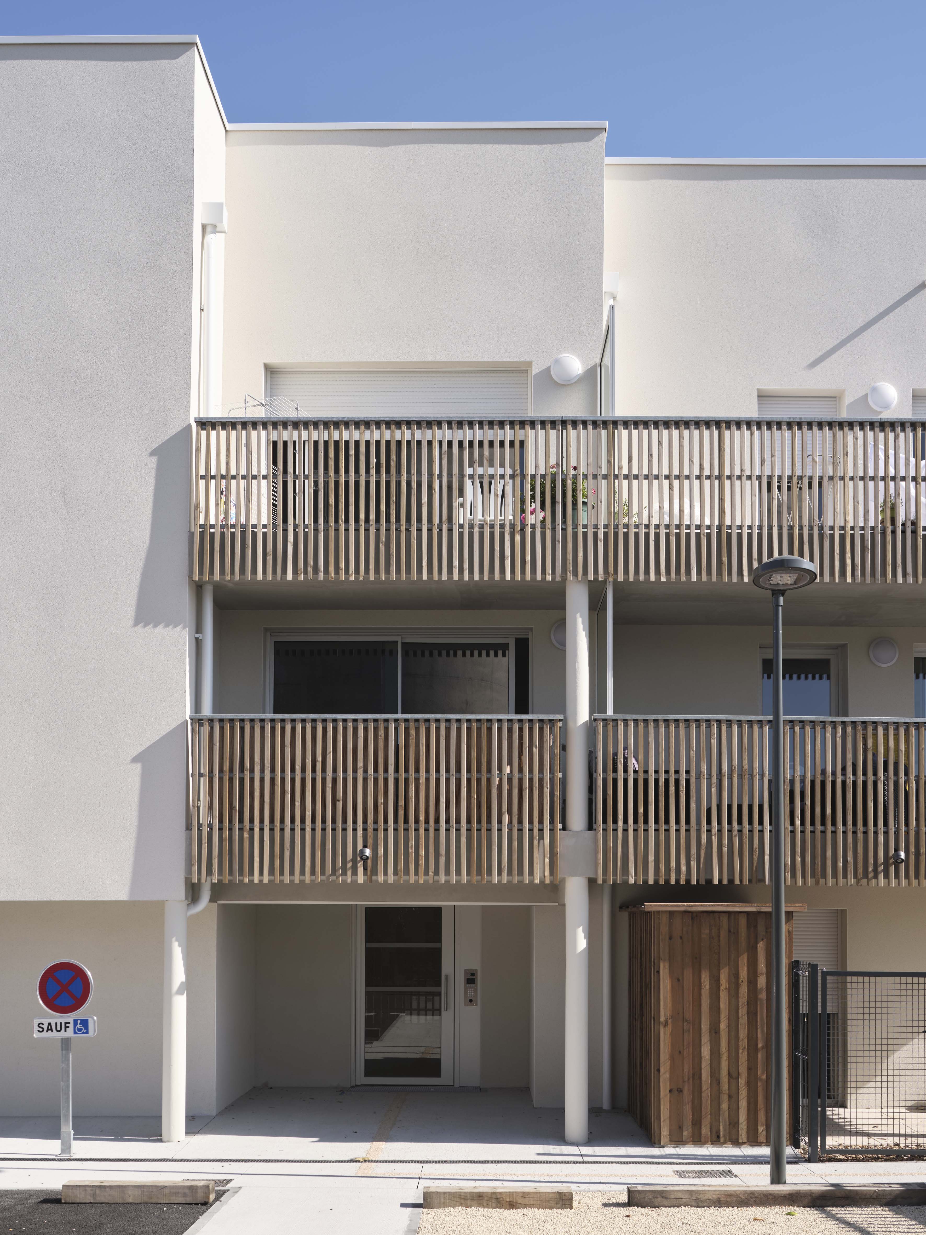 La démolition de l’ancien SPAR permet la construction d’un immeuble collectifs de 9 T3 et 7 T2 pour séniors répondant aux contraintes urbaines. La volumétrie du bâtiment s’adapte aux limites de la parcelle. Malgré la géométrie complexe de cette dernière, les logements se caractérisent par une grande habitabilité. Les 2/3 des logements sont orientés pleins sud avec des balcons permettant le contrôle des apports solaires l’été. Les façades sont en briques enduites. Les garde-corps des balcons sont en tasseaux de bois verticaux apportant modernité et chaleur à la résidence.