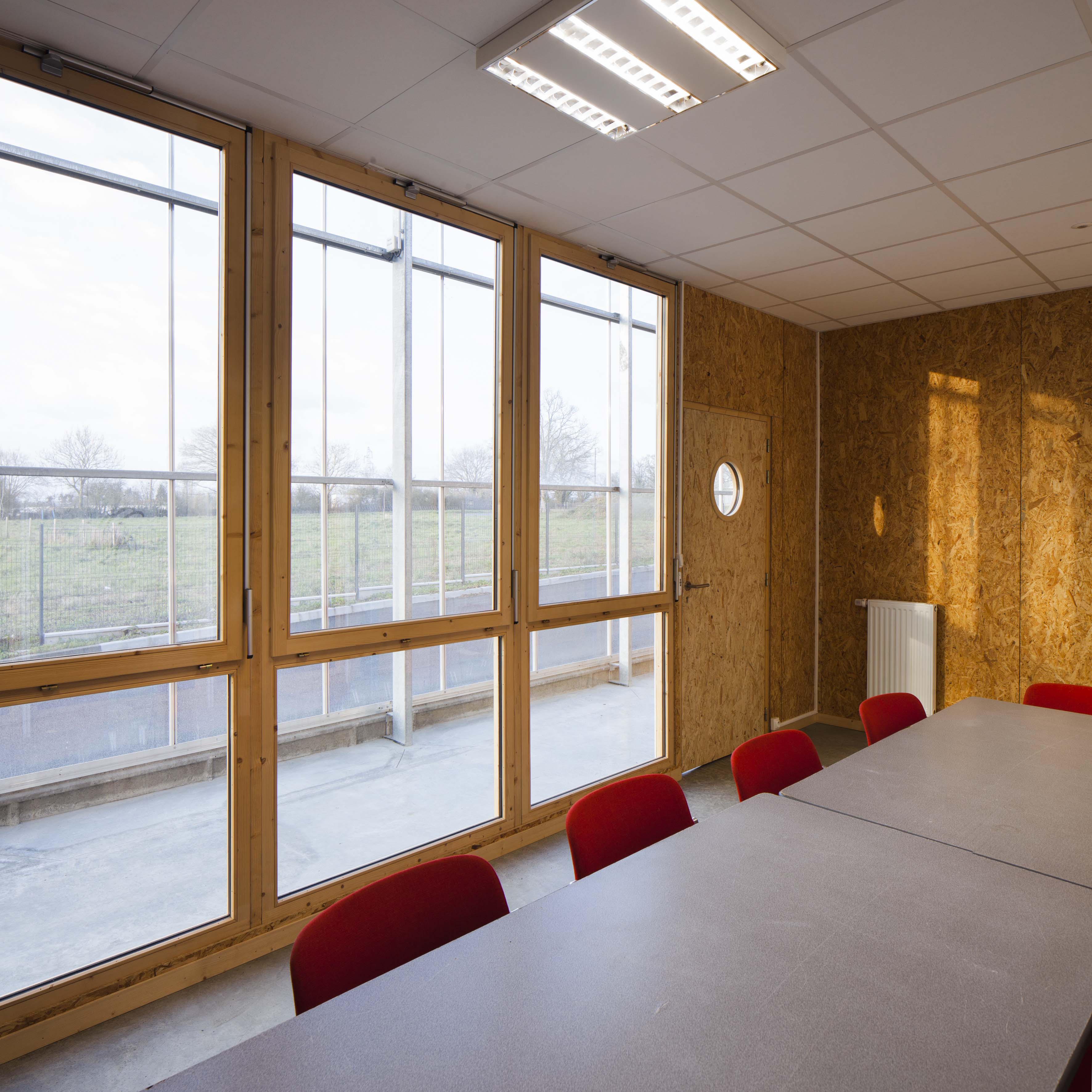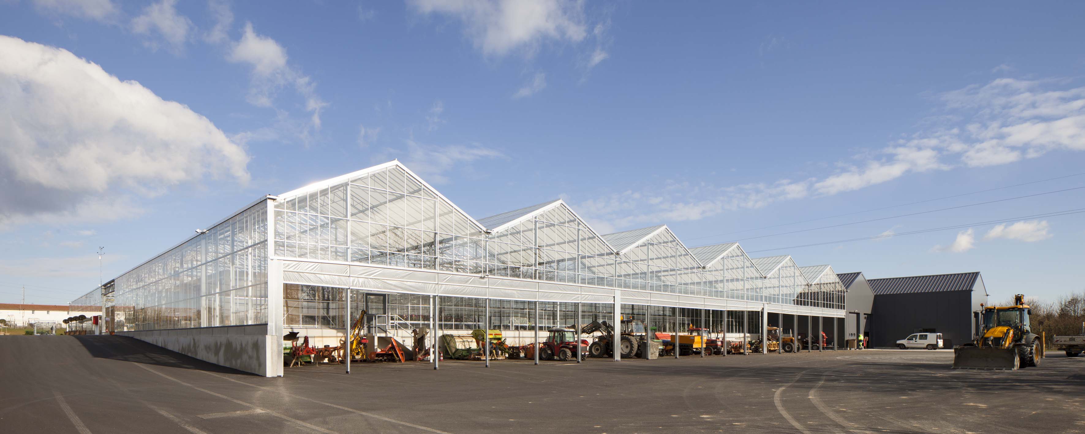 Le projet vient remplacer les serres municipales actuelles devenues obsolètes. Ses deux objectifs principaux sont l’amélioration des conditions de travail des agents et l’optimisation du process de culture (amélioration de la qualité des plantes et réduction des coûts de fonctionnement). Le site du projet fortement pentu, est divisé en trois plateformes reliées par des rampes, qui définissent les différents espaces : parking, cultures sous serres, aire de manoeuvre et cultures extérieures. Les serres décrivent un bâtiment simple et compact qui vise une rationalisation des flux et les économies d’énergie. La partie bureaux et vestiaires a fait l’objet d’une étude particulière au sein du projet. Il s’agit d’une construction autonome montée à l’intérieur d’une serre et constituée de panneaux sandwich préfabriqués en bois. Les matériaux utilisés pour le projet sont le béton brut pour les soubassements, le bardage bois pour les parois et le bac acier en toiture.