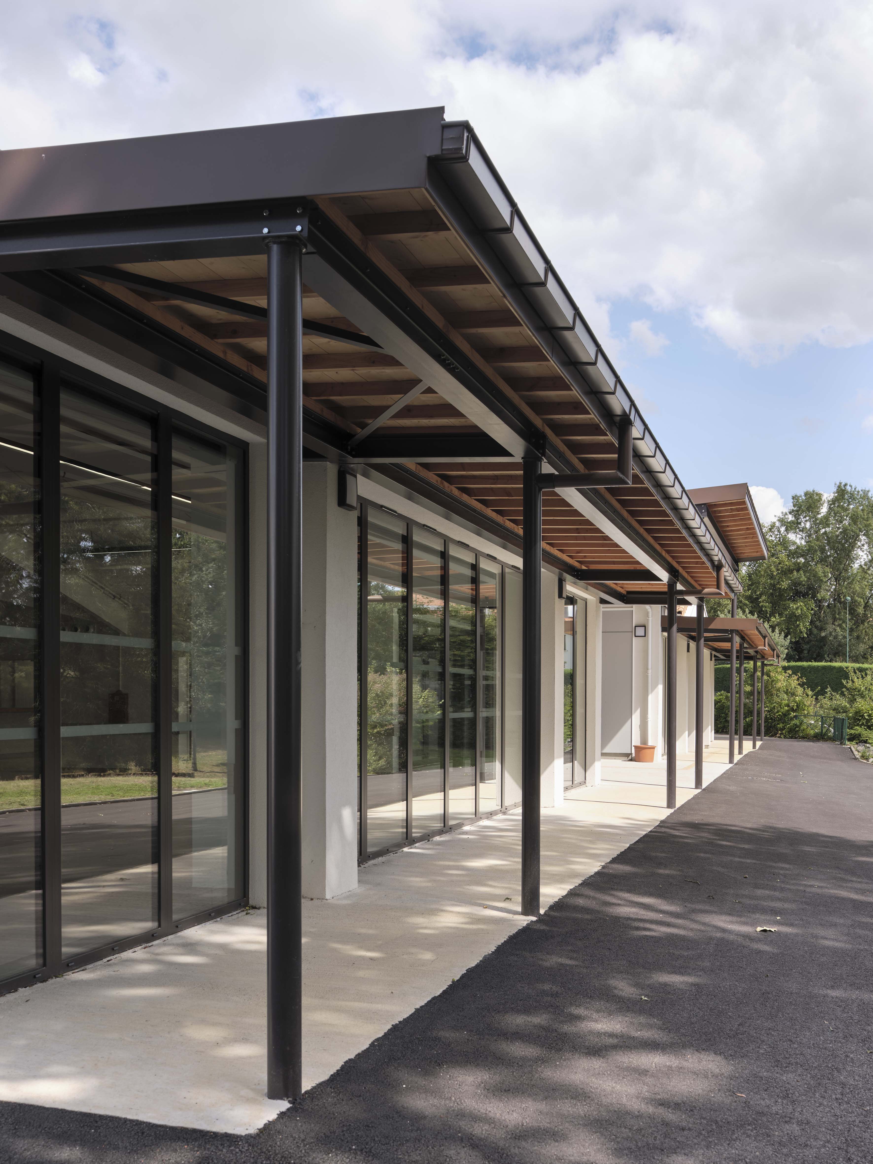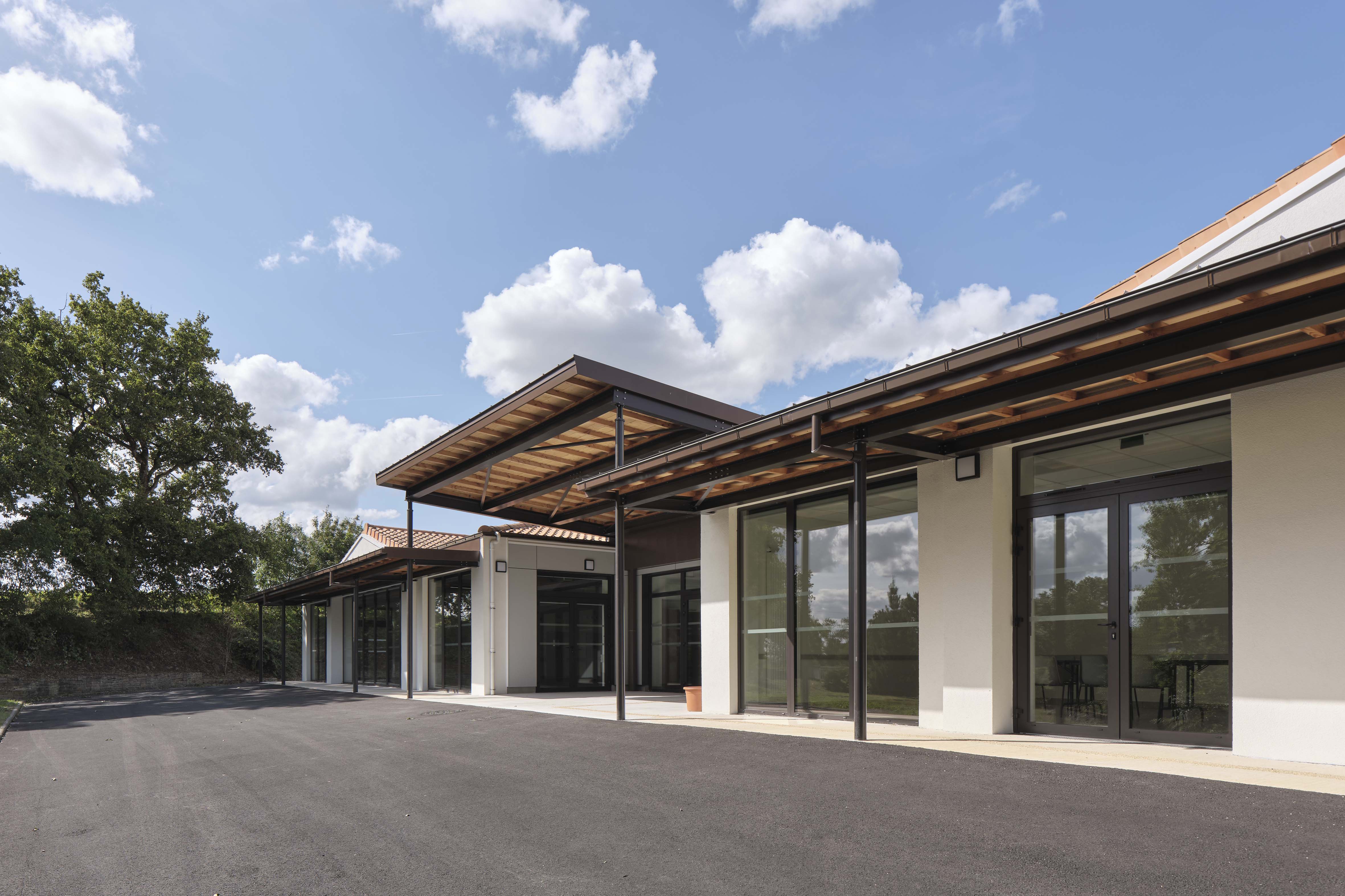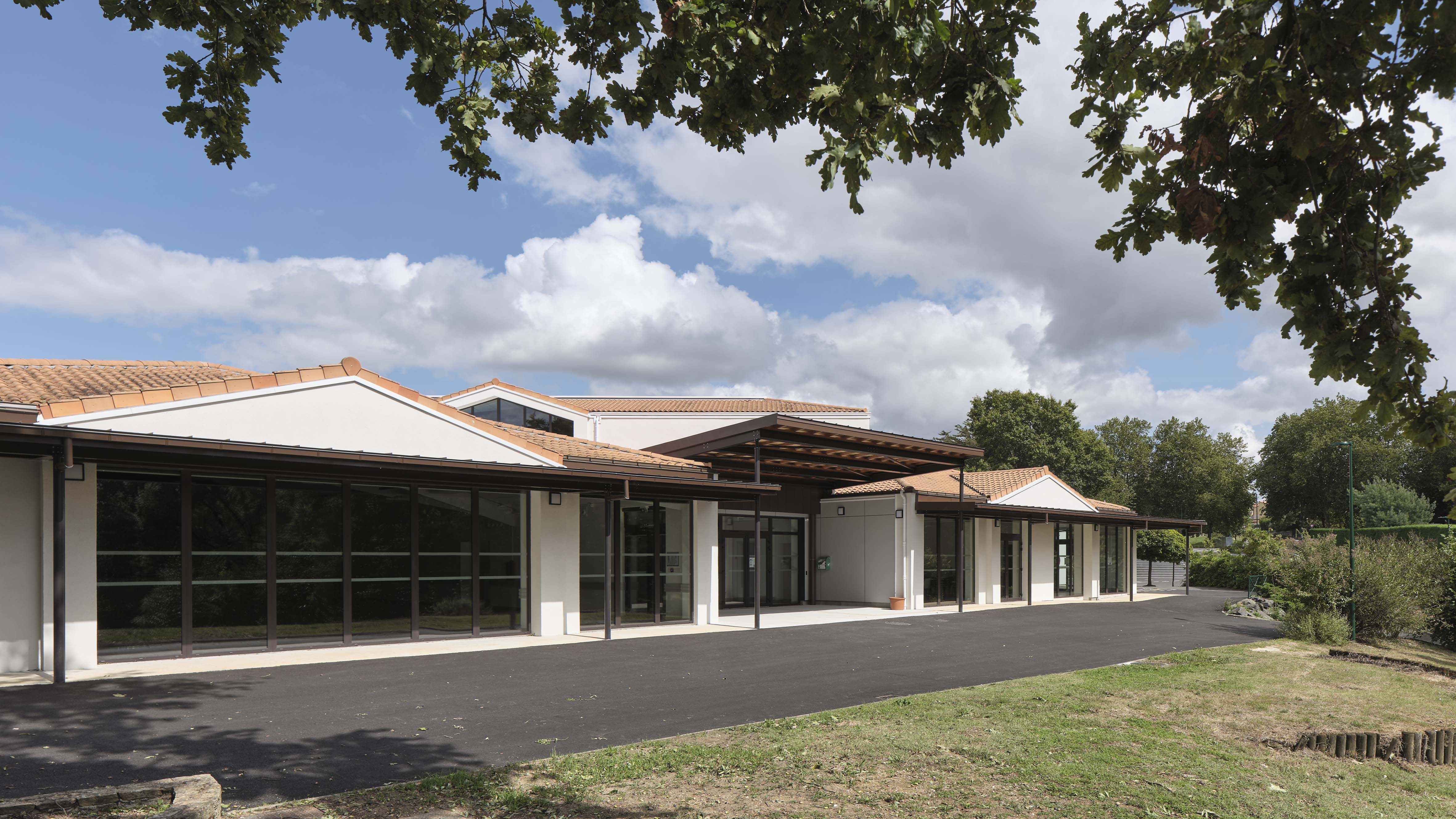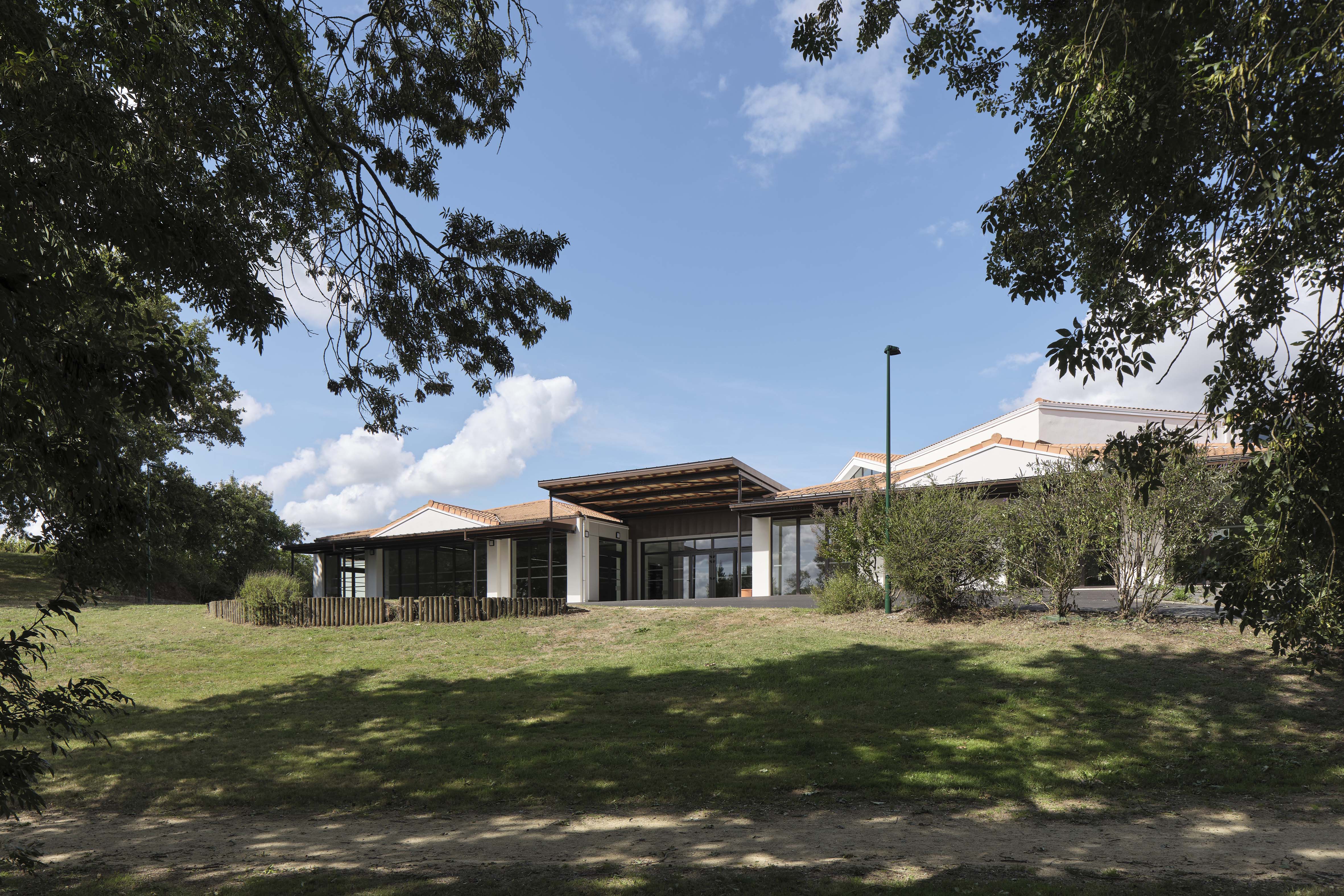 Le projet de rénovation énergétique du Complexe des Nouëlles (salle polyvalente et salle de sports) répond à plusieurs enjeux (amélioration thermique en hiver et en été, mise en conformité accessibilité, mise en conformité sécurité incendie, remplacement de la cuisine par un office, création de locaux de rangements). Pour répondre à ces enjeux, un ITE est réalisé sur l’ensemble des parois, les menuiseries extérieures sont changées et l’isolation des couvertures est renforcée impliquant des renforcements structurels. Cet embellissement des façades est renforcé par l’installation d’une casquette protégeant les façades sud et marquent les entrées. Une géothermie et une centrale double flux sont installées pour le chauffage (panneaux rayonnants) et la ventilation des locaux permettant un rafraichissement en été.