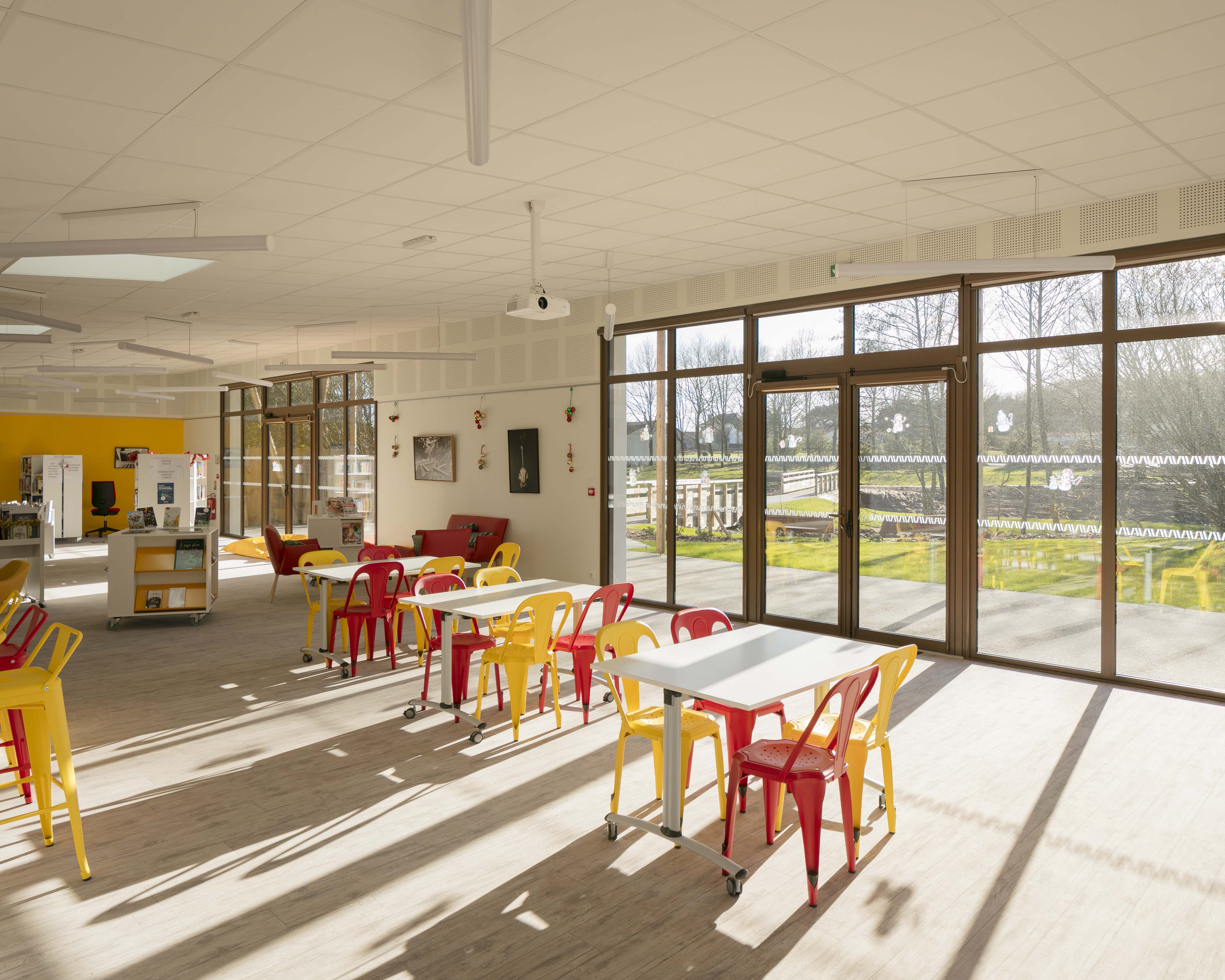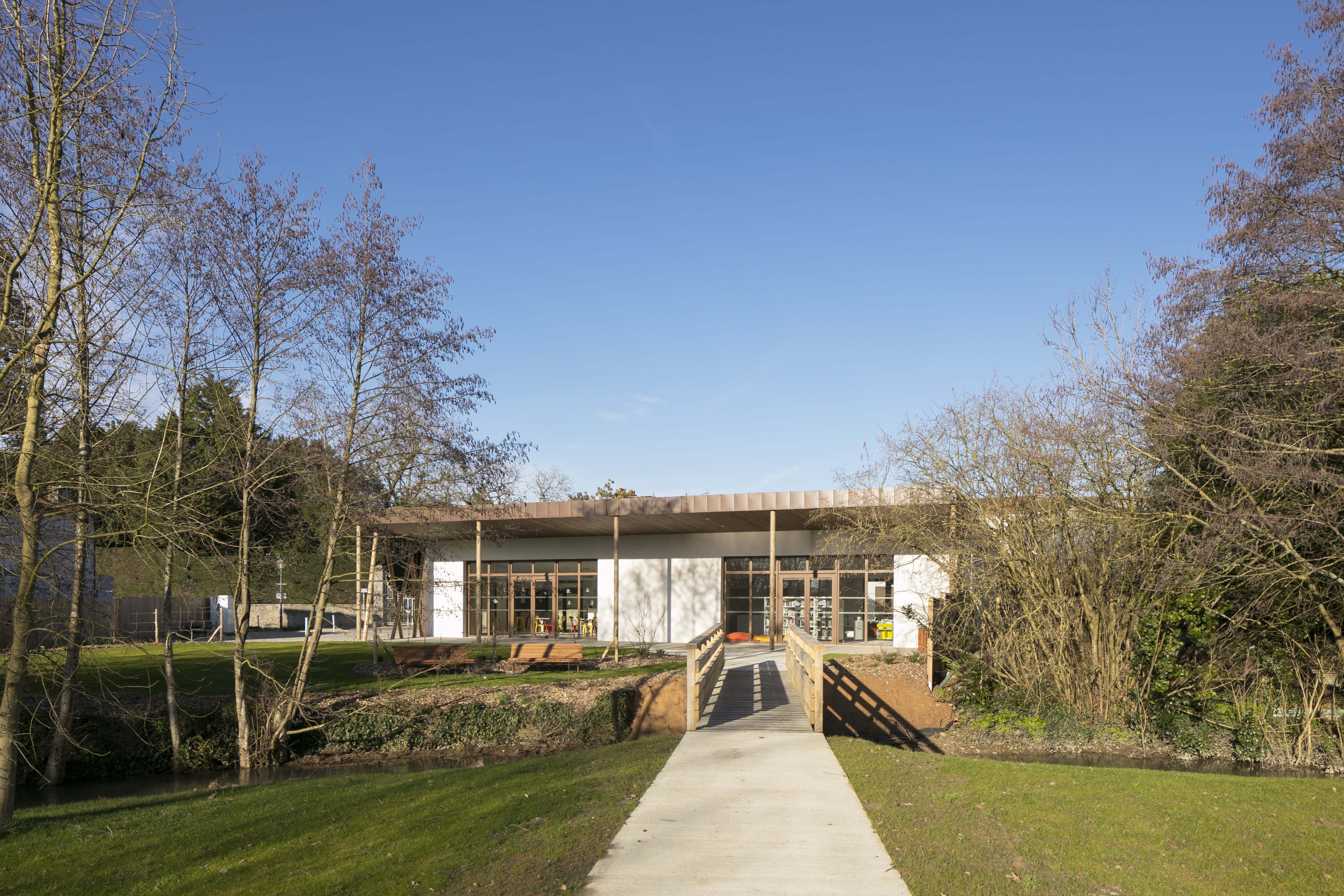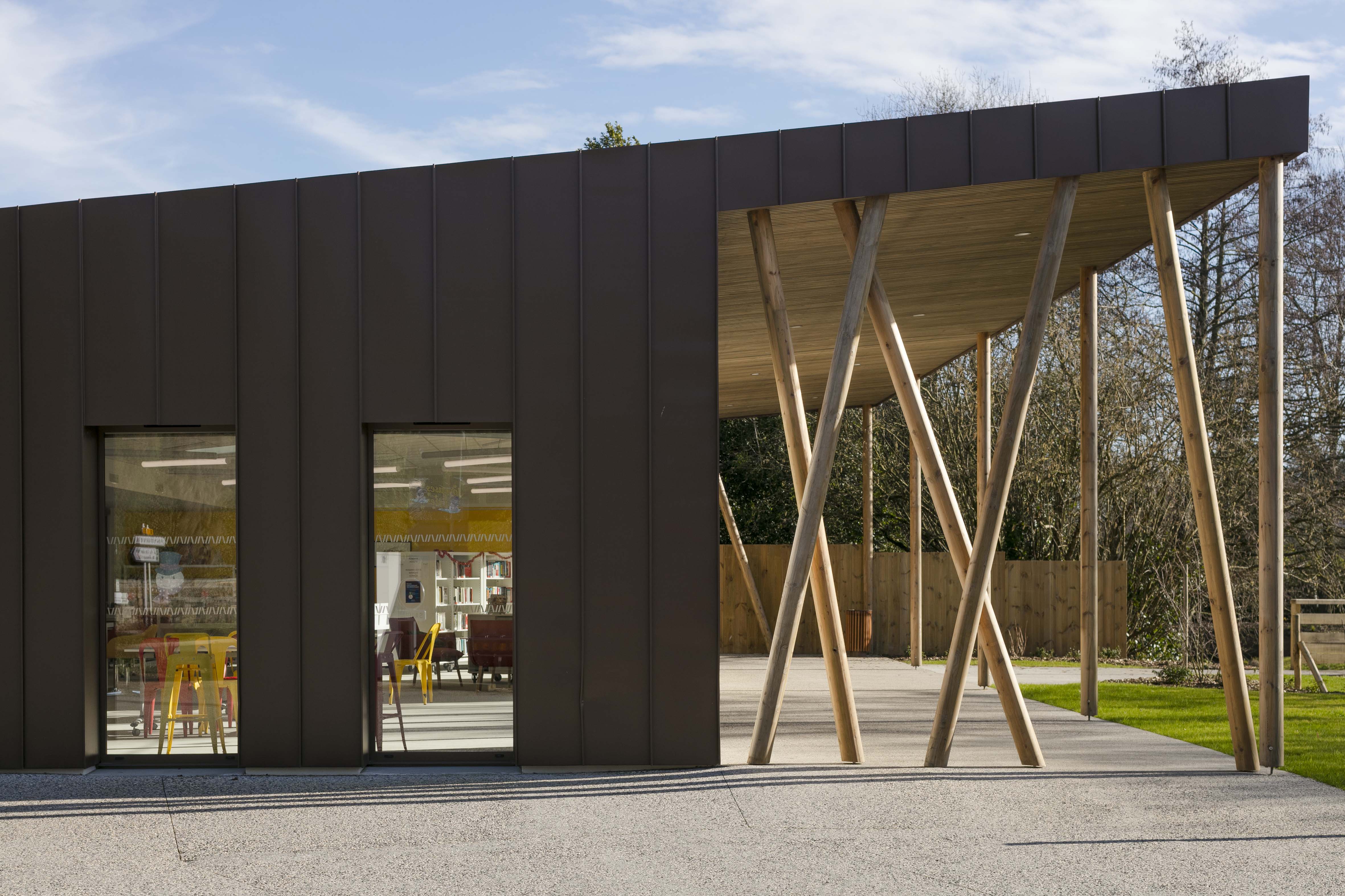 Ce bâtiment public construit pour revitaliser le centre bourg de Mormaison accueille un commerce, une bibliothèque et un lieu de convivialité où se retrouvent toutes les générations. Situé en proue du bâtiment, le commerce crée un front bâti en continuité du tissu urbain alors que la bibliothèque et la salle de convivialité s’ouvrent vers la rivière et son espace boisé. Son architecture contemporaine dominée par le zinc marron s’harmonise avec les murs en pierre, la tuile et l’espace vert du site.