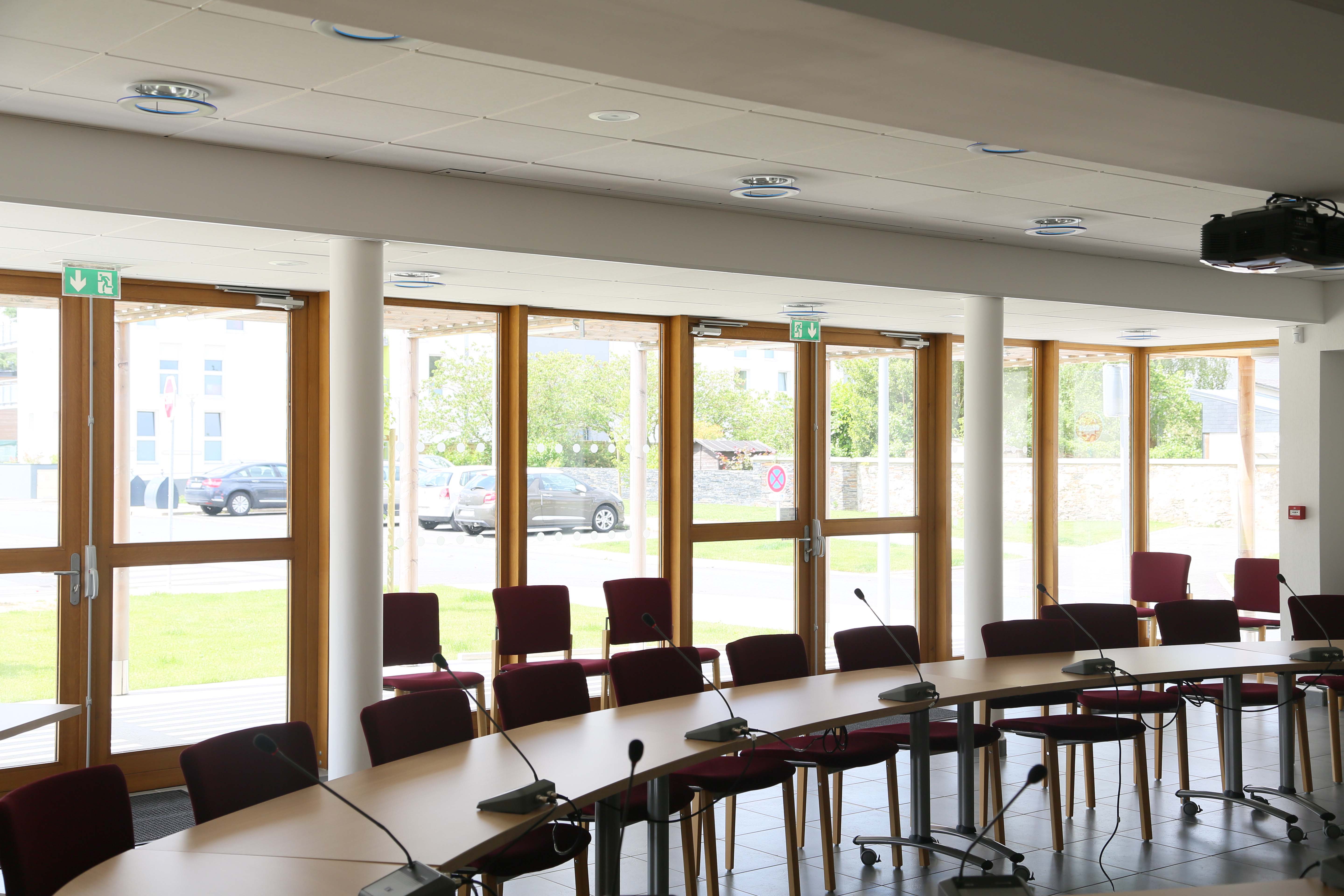 Le projet consiste en la réhabilitation d’un bâtiment pour la réalisation d’une annexe à la mairie. L’exiguité de la mairie actuelle et les difficultés d’accès aux personnes à mobilité réduite l'ont conduite à externaliser sa salle de conseil servant également au mariage. Il a été décidé d’un réaménagement complet d’un bâtiment voisin, présentant une architecture plutôt domestique que tertiaire. Lui conférer un statut de bâtiment public a nécessité des travaux lourds. Aujourd’hui largement vitré, accueillant le public sous une large casquette, habillé de zinc et de bois, il assume et affiche ses nouvelles fonctions. Cette rénovation répond aux normes BBC (Bâtiment Basse Consommation) grâce à une très bonne isolation et étanchéité à l’air.