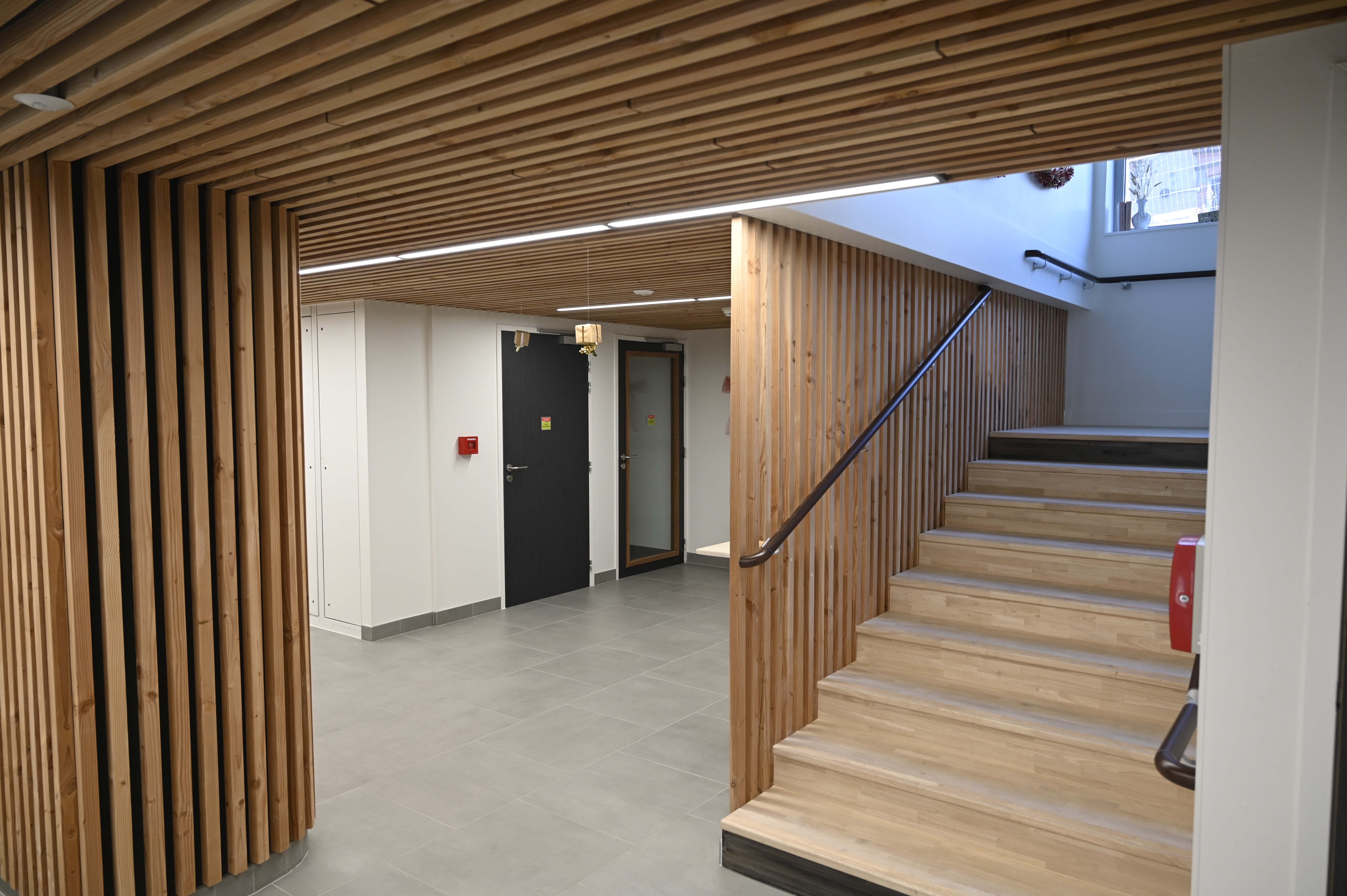 Ce programme se fond dans un cadre urbain très strict. Il consiste en une rénovation du bâtiment existant et en une extension permettant de doubler la capacité d’hébergement et de recréer des locaux de restauration et d’animation lumineux et conviviaux. L’extension animée par trois volumes s’inscrit dans le rythme des maisons de ville qui bordent la parcelle.