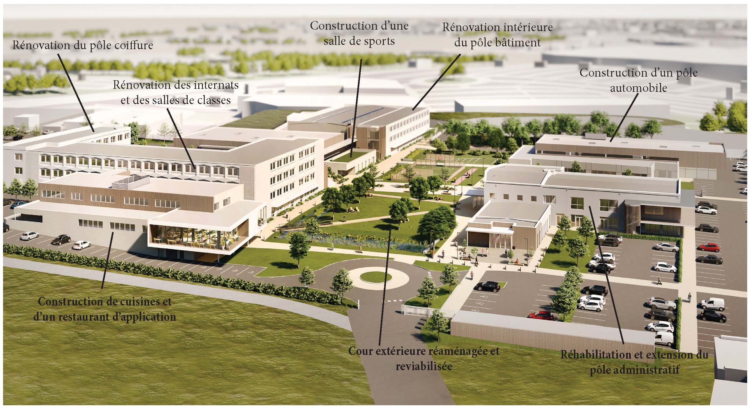 La restructuration et l’extension du CFA de la chambre de Métiers et de l’Artisanat est un projet d’envergure qui concerne l’ensemble du site : réorganisation du plan de masse, création d’un pôle automobile, d’une halle de sports, rénovation du pôle bâtiment et de l’administration. Le projet principal concerne la création d’un pôle hôtellerie/restauration avec la création d’un restaurant d’application et de deux salles de restauration. Le projet permettra à terme d’offrir une image valorisante de l’apprentissage et d’inscrire le site dans le monde de demain que ce soit par la qualité des espaces que par la prise en compte des contraintes environnementales.